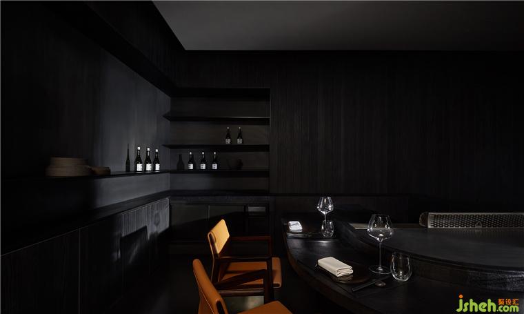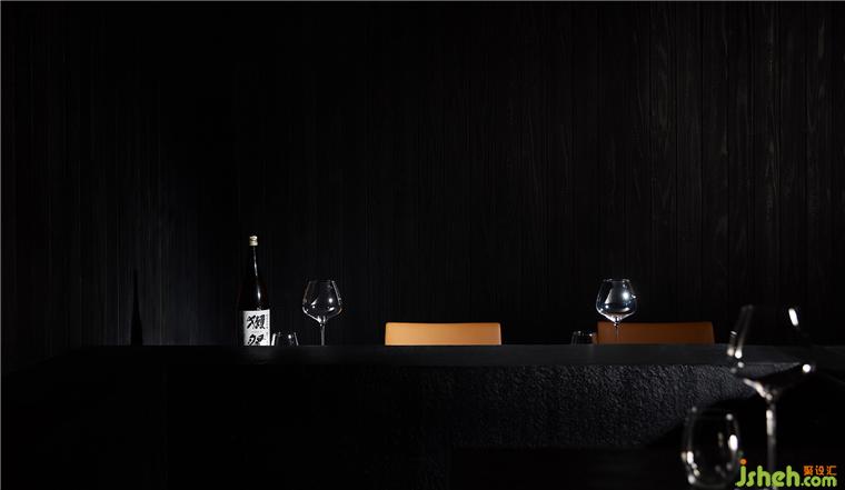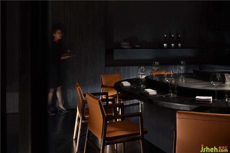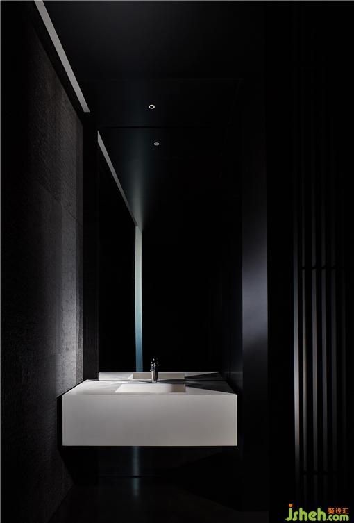 卫生间遵循着材料、比例与秩序,利落从简。铁板烧餐厅设计粗粝的肌理与光滑的表面,配合光线映衬,强化其质感,也进一步凸显层次。
