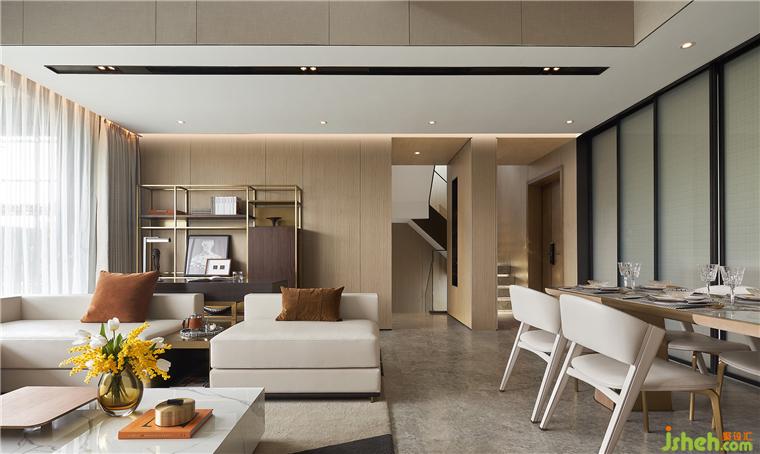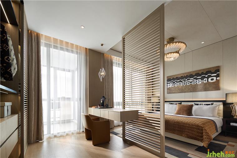 光影随着木格栅一同律动,相互渗透,虚实结合,样板间设计于精奢的质感之中也创造出独特的疆域。