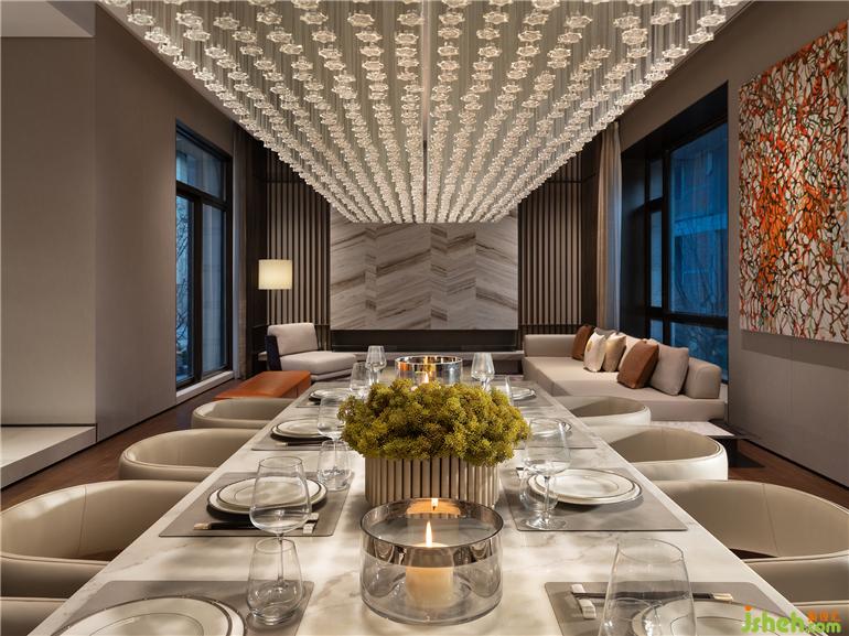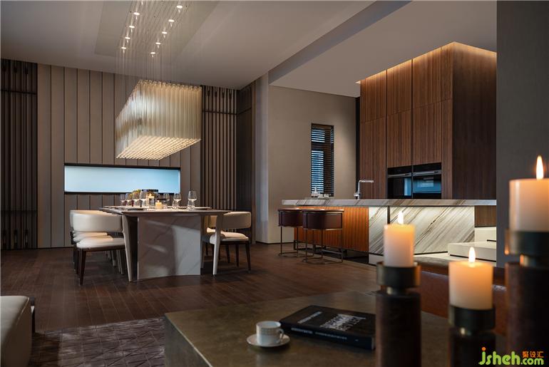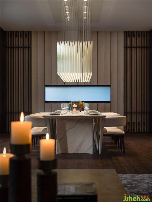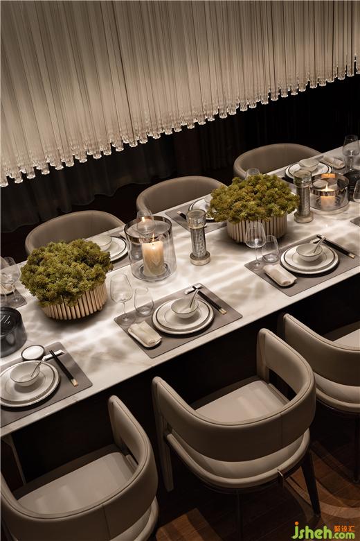 客餐厅于横轴上联动而设,熟悉的金属格栅对称散布于四角,开阔大气的东方格调不彰自显。常州天安别墅设计背景墙石材对拼奠定客厅沉稳俊朗的主基调,软装陈设将大气雅致与质感表现相平衡,以期互补共生。烛火摇曳,美好愉悦氛围也随之渲染。