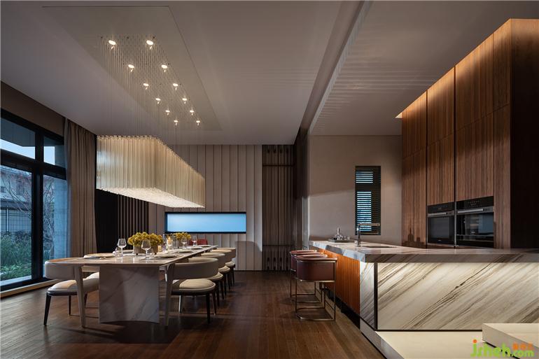 常州天安别墅设计以融洽的存在,表达静谧自由的本色。将木盒子浑然嵌入,中厨于内、西厨于外,这包含着对每一寸空间的周全应用,也是对功能需求的完善与补充。