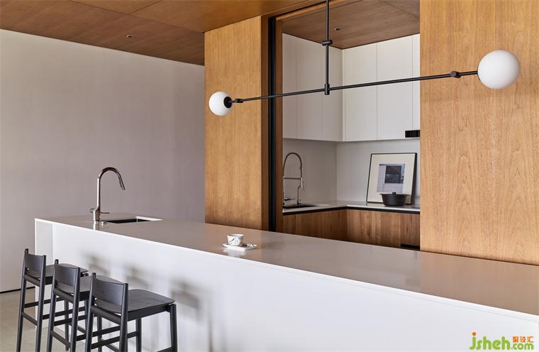 度假居所设计注重化零为整,厨房以BOX体块构筑温馨场域,既整合了空间关系,又预设充足的收纳功用,在选材和处理手法上则遵循壹舍团队一贯的克制平衡之道。