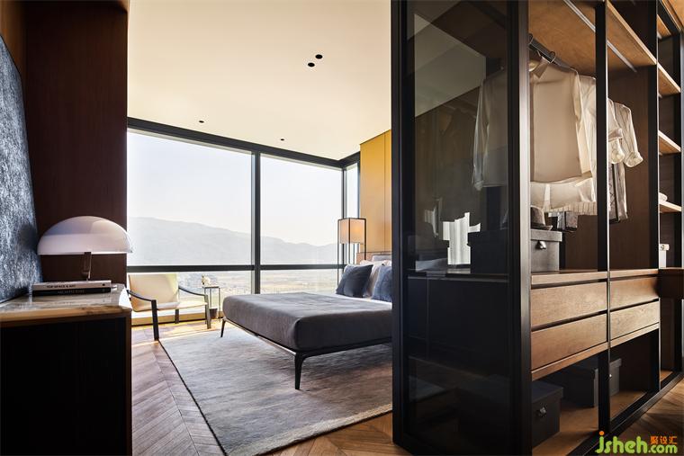 在某一瞬间邂逅不期而遇的惊喜,无疑是生活情趣的注入。“我们充分考量步入主卧套间的第一感受,以前方的窗景和明亮简洁的浴室相迎。同时利用大块镜面去反射、渗透,为其扩容,既保证各功能区的顺畅流转,又可让淡然的气韵自由穿梭,可谓每一个角落都令人身心愉悦。”方磊介绍道。严先生夫妇对此也分外满意。
