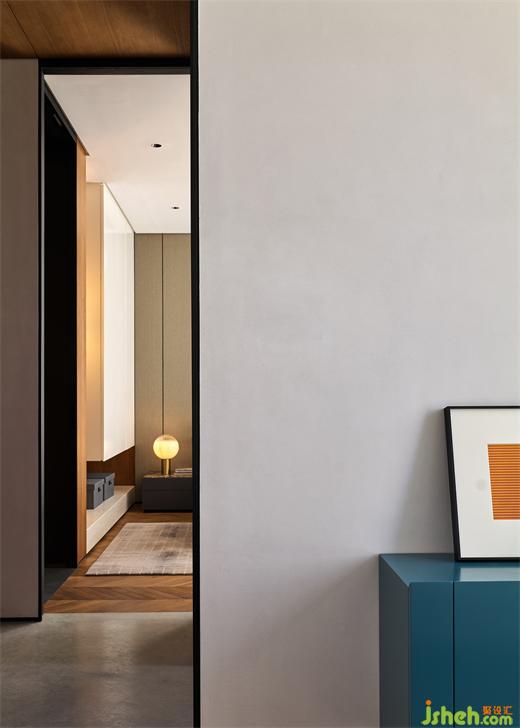 室内对造型、尺度的把控,同样关乎居住感受。客卧床头柜采用高低式布局,柜体舍弃一体顺延至顶的形式,渲染轻盈的呼吸感,不经意间释放出宁静、慵懒的包容气息。