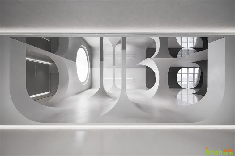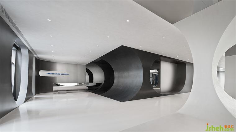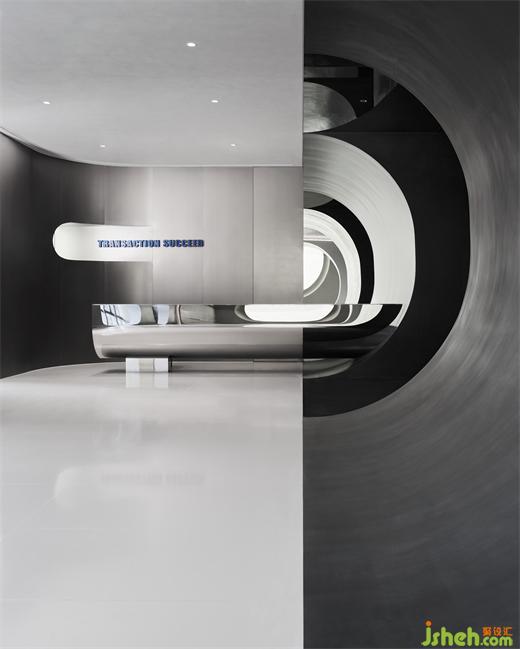 办公室设计考虑到建筑玻璃幕墙的特征,以及室内设计调性,和企业元素的衍生与变化,最终确定为弧形窗洞。整体撷取弧形的弯曲形状作造型,勾勒自由流畅的廓形,既为起笔开篇,也贯彻全程。