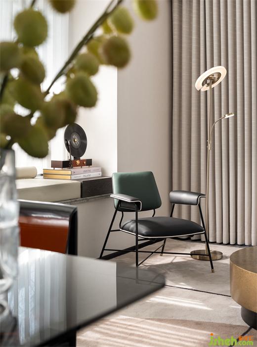 偌大的飘窗以及阳台玻璃移门,为开放式客餐厅带来卓越的采光面。客厅践行着“去电视背景化”的设计理念,上海样板间设计让窗外的美好景致悄然滋养着日常。多款家具选型上,体量感与框架感相得益彰。并因地制宜巧借飘窗角落,精心构筑休闲一隅。
