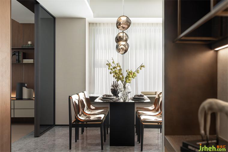 餐厅,荟萃着家的爱意与温暖。作为入户后显著一景,其靓丽的色彩、舒畅的氛围、错落的构造,多元层次呼之欲出。上海样板间设计在材质选取、元素运用与造型语汇上,亦注重一脉相承,强化整体概念。