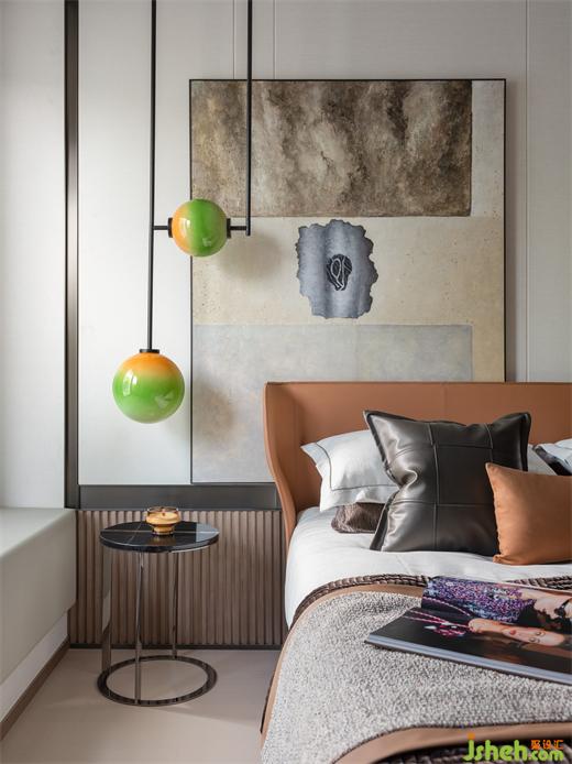 在低调中流露沉稳,于简约中铸就细节,主卧套间借助轻盈的线条、娴熟的构成手法、以及块面与圆弧的顺畅交融,氤氲着深层的内涵与意味。梳妆桌与床头柜一体成型,在起伏中极具互动性与关联感。