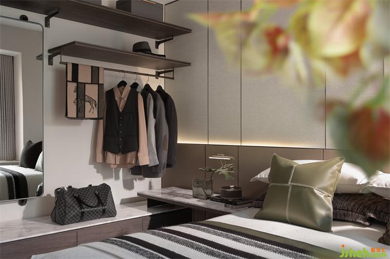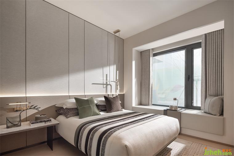上海样板间设计师以宁静与平衡的内核将次卧风情娓娓道来,尽显深浅对比、纵横交错、前后穿插、虚实相生。既把控了视觉上的韵律与比例关系,又串联起使用中的动作与心理,耐人寻味。