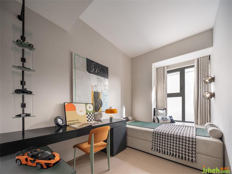 儿童活动室力求实现尺寸的最优化利用,集亲子、玩乐、学习等多场域于此,并因势结合飘窗,以蔓延相连的软包垫,铺展整体利落之貌。汽车主题的陈设充盈室内,让热血少年的梦想随风驰骋。