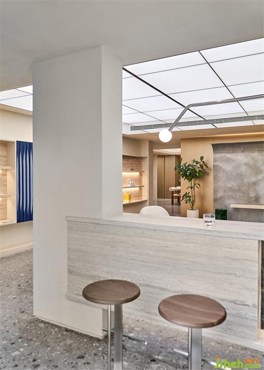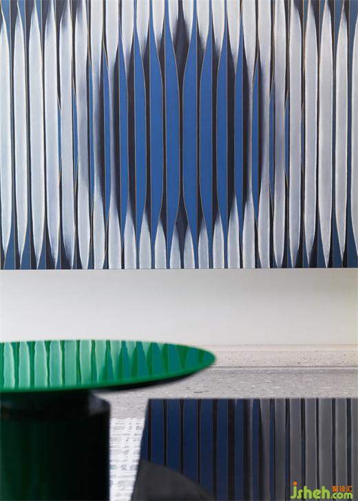 光线随时间流转明暗交替,色彩也以不同方式细微调整。立面上金属波纹板、肌理漆,豪宅设计以及局部跳色点缀,打破了呆板,彰显特色。此外,艺术藏品与家居、设计选材无一不是惊喜搭配,内在的点滴与设计妙用皆有所呼应。