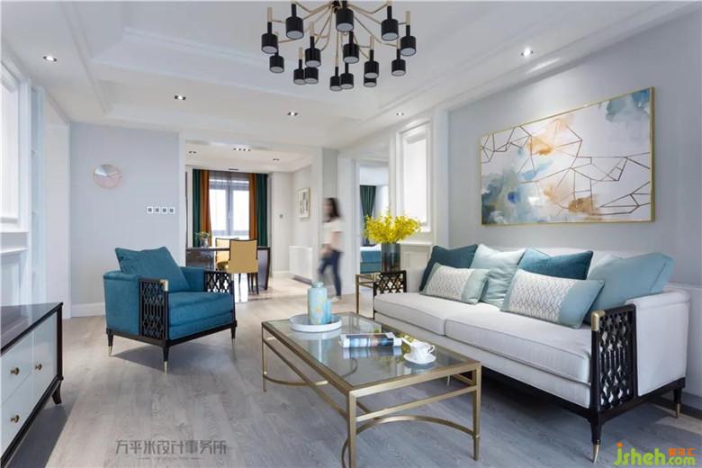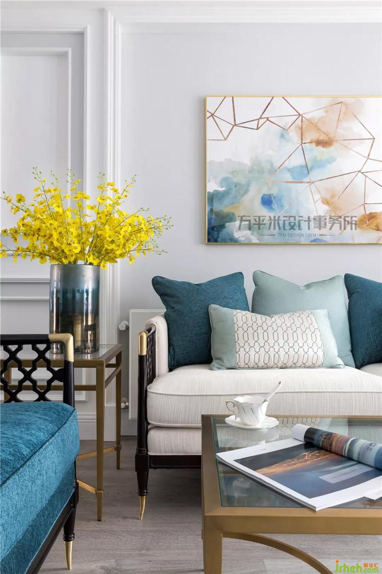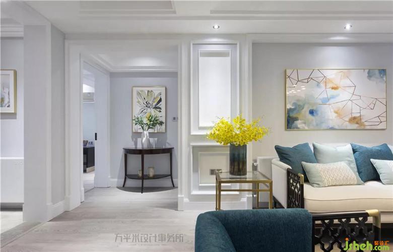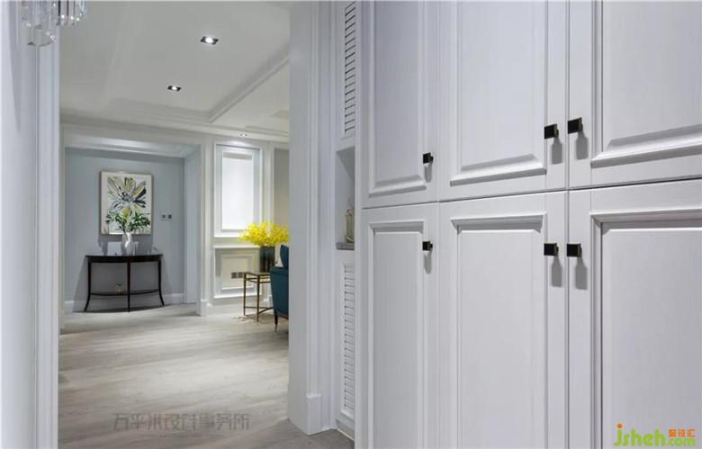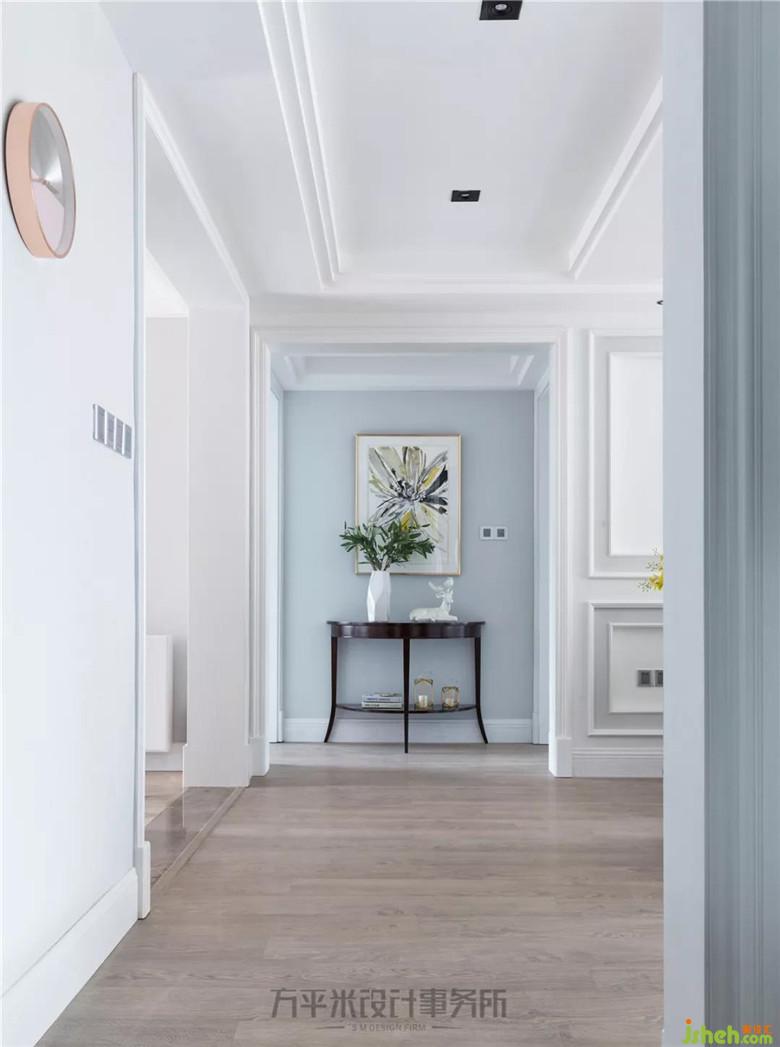 走廊尽头的繁花装饰画作,推门入户即映入眼帘,为全屋淡雅清新灰蓝色调带来芬芳甜美的写意装点。装修公司