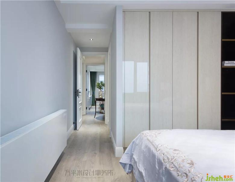无主灯的照明风格延续,草绿色绒布窗帘为卧室带来自然柔和色彩及质感。