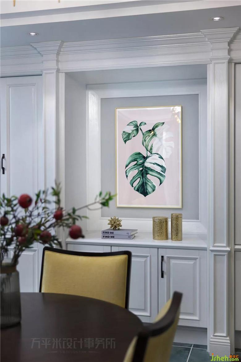 内嵌淡雅清新的装饰画作。温柔装点就餐环境。
