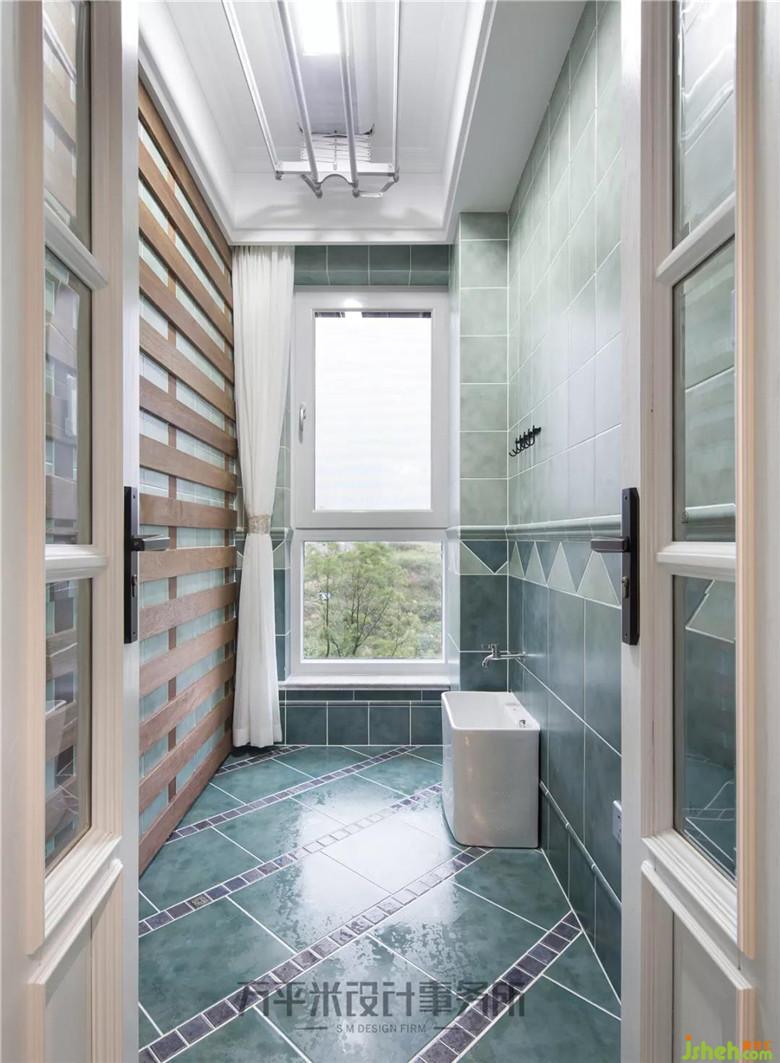 走廊尽头处的小房间作为花房使用,别出心裁将防腐木与仿古砖交错铺贴后,再安装多根防腐木条,为挂墙安放花盆提供便利。清玻对开门设计,令房间成为走廊区域自然光线入口。