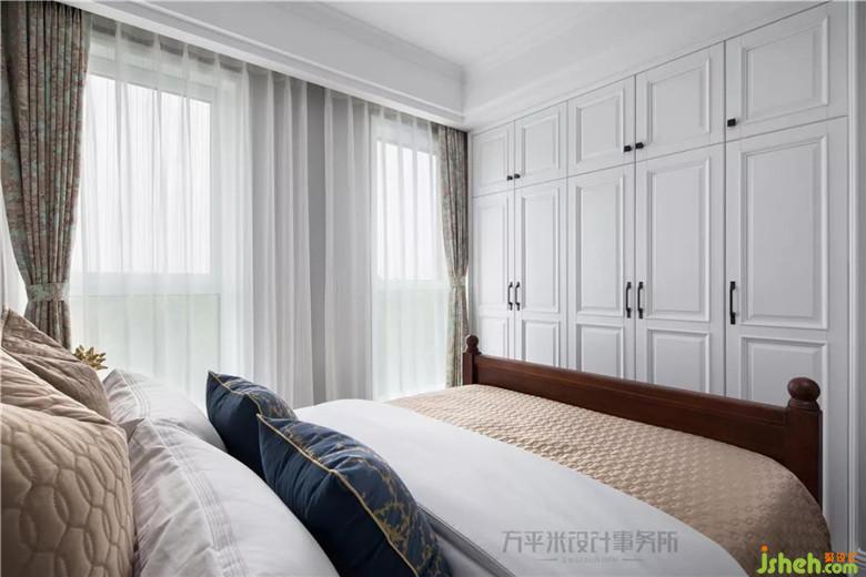 次卧依长辈喜好选用深咖色原木床,使用浅咖及蓝色系软装平衡其厚重感。嵌入式衣柜提供便利收纳。 共5页: 上一页12345下一页