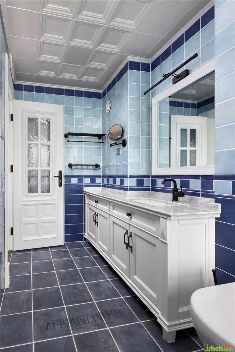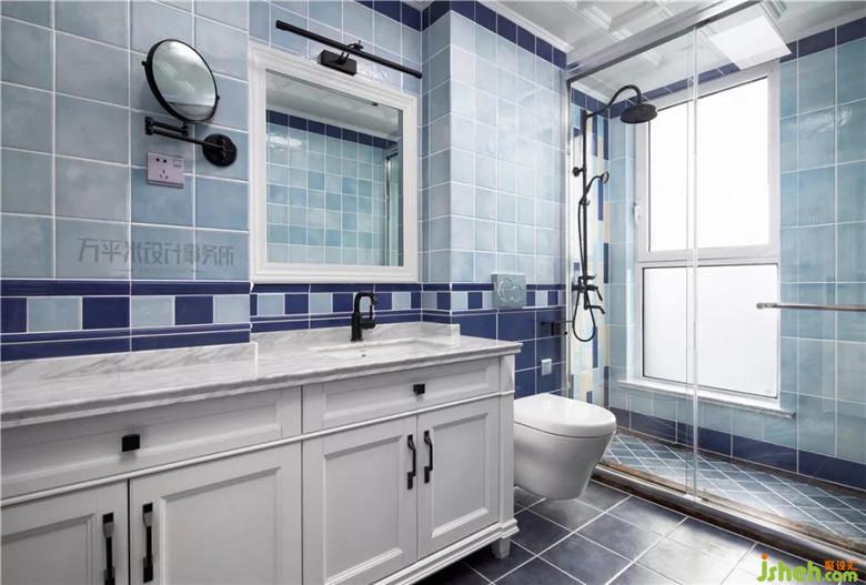 宽敞内卫干湿分离,同样选择壁挂式坐便器便于打理。定制木门内嵌水纹玻璃,同时保证采光及私密性。
