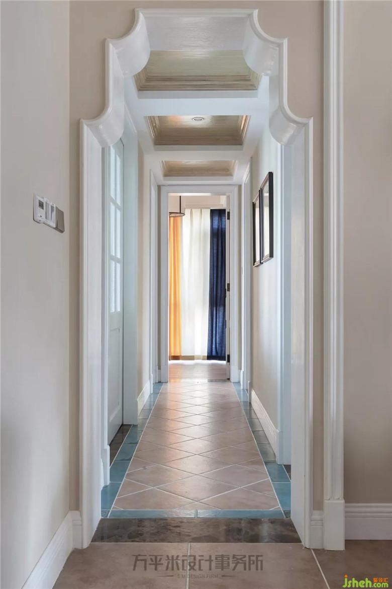 木质优雅弧形门洞后,是进入卧室区域的通道。将左侧多功能次卧的门洞扩宽,宽敞移门取代原有单门,并内嵌水纹玻璃,保证卧室私密度的同时,也为长距离走廊引入北侧自然采光。