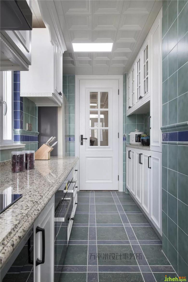 面积扩大后的厨房有双采光窗,明亮通透。借用生活阳台面积后,将对开门冰箱轻松嵌入。