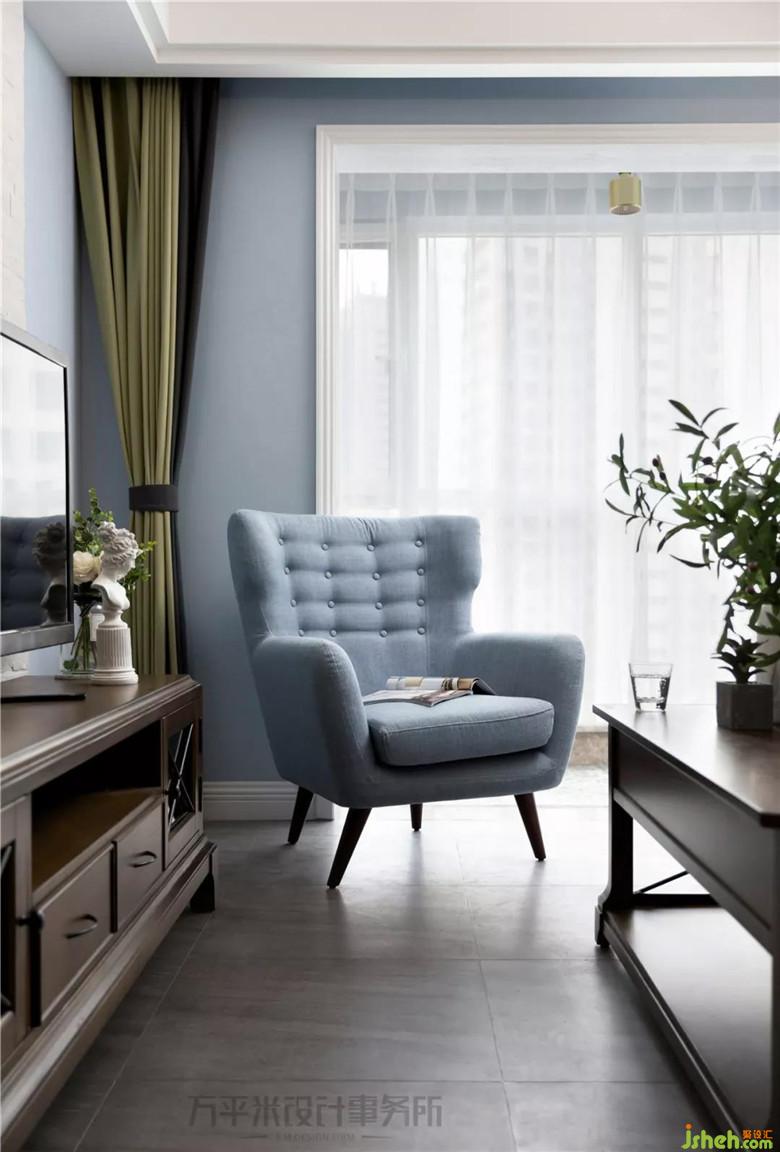 深青与草绿棉麻窗帘撞色,轻松营造出年轻的活力感。皮粉与墨绿的热带花鸟元素,带来异国假日时光般热情与喜悦。 色泽沉稳的木质家具搭配铁艺元素,令轻松的美式休闲韵味自然散发。将文化石砌出简单造型,成为文艺感浓厚的电视背景。粗犷自然肌理,映衬木质温暖细腻。