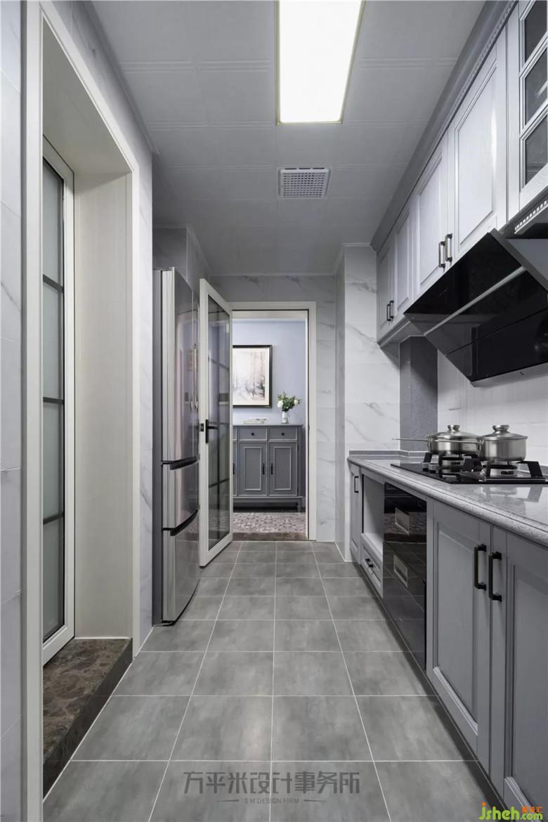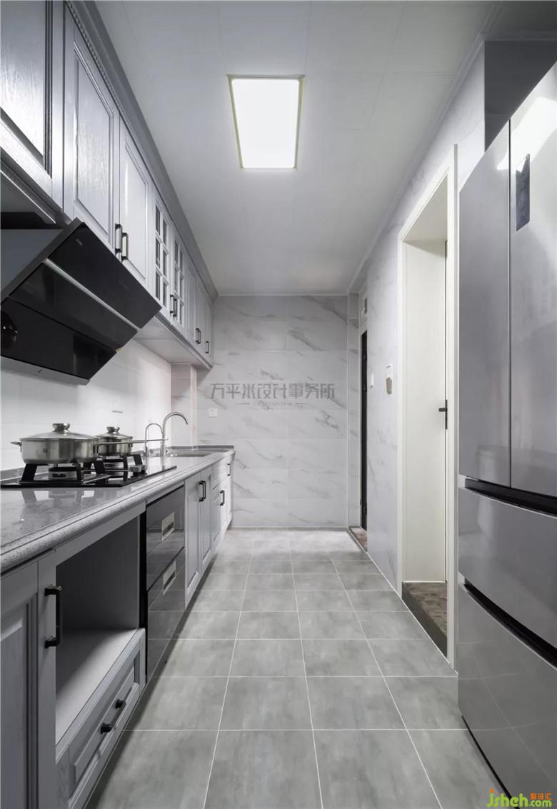 将隔墙砌出凹槽借用后方空间,使狭长厨房有了容纳冰箱的合理区间。冰箱嵌入后不影响原橱柜空间及通行动线。满墙地柜及吊柜得以延长,提升收纳功能也为洗切炒盛留出足够操作尺寸。定制灰色橱柜及同色台面,搭配白色光洁小砖铺贴。有清爽的高级感。 共3页: 上一页123下一页