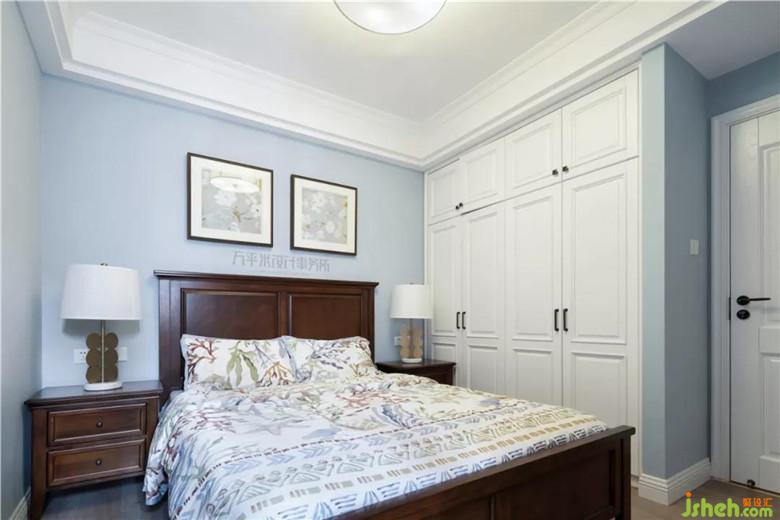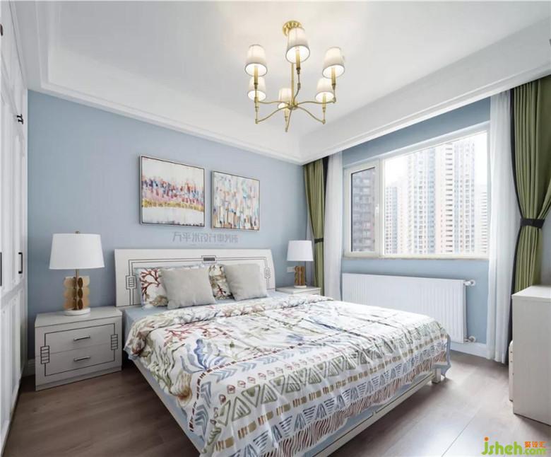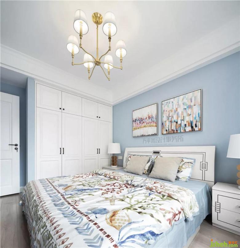 为节约成本,把以前购置的白色系家具摆放至主卧过渡使用。窗明几净间,淡彩床品与挂画于色彩上呼应。