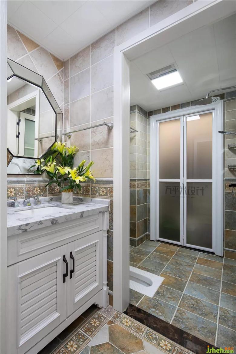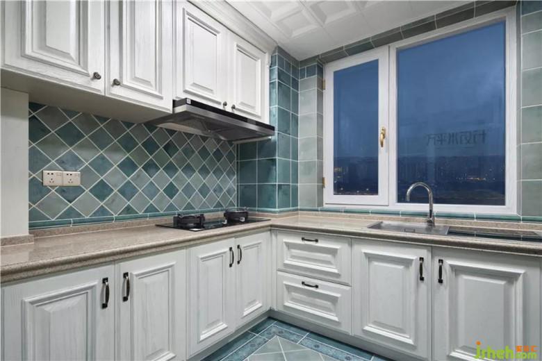餐厅墙面一侧选用镜面装饰,意在视觉上拉伸纵向空间。与厨房间的原隔墙拆除后用两组对称展示储物柜取代,上部清玻柜门,更令空间感保留。厨房因改变生活阳台门朝向,从而实现大尺寸U型地柜。