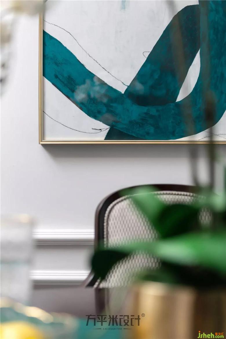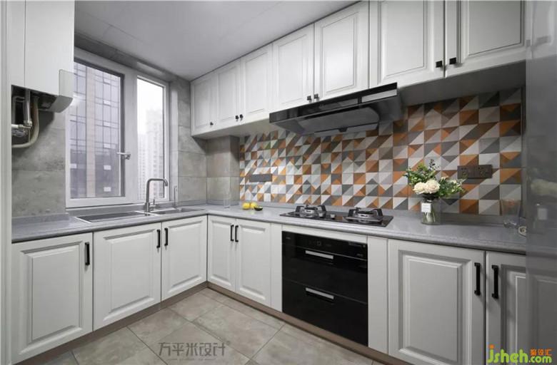 厨房洗切炒盛的动线设置合理。少许加长的厨房隔墙将对开门冰箱嵌入,更为美观。