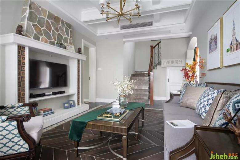 电视背景采用壁炉造型,将电视嵌入其中。联动两边门洞,形成整体背景,简单而又不失格调。