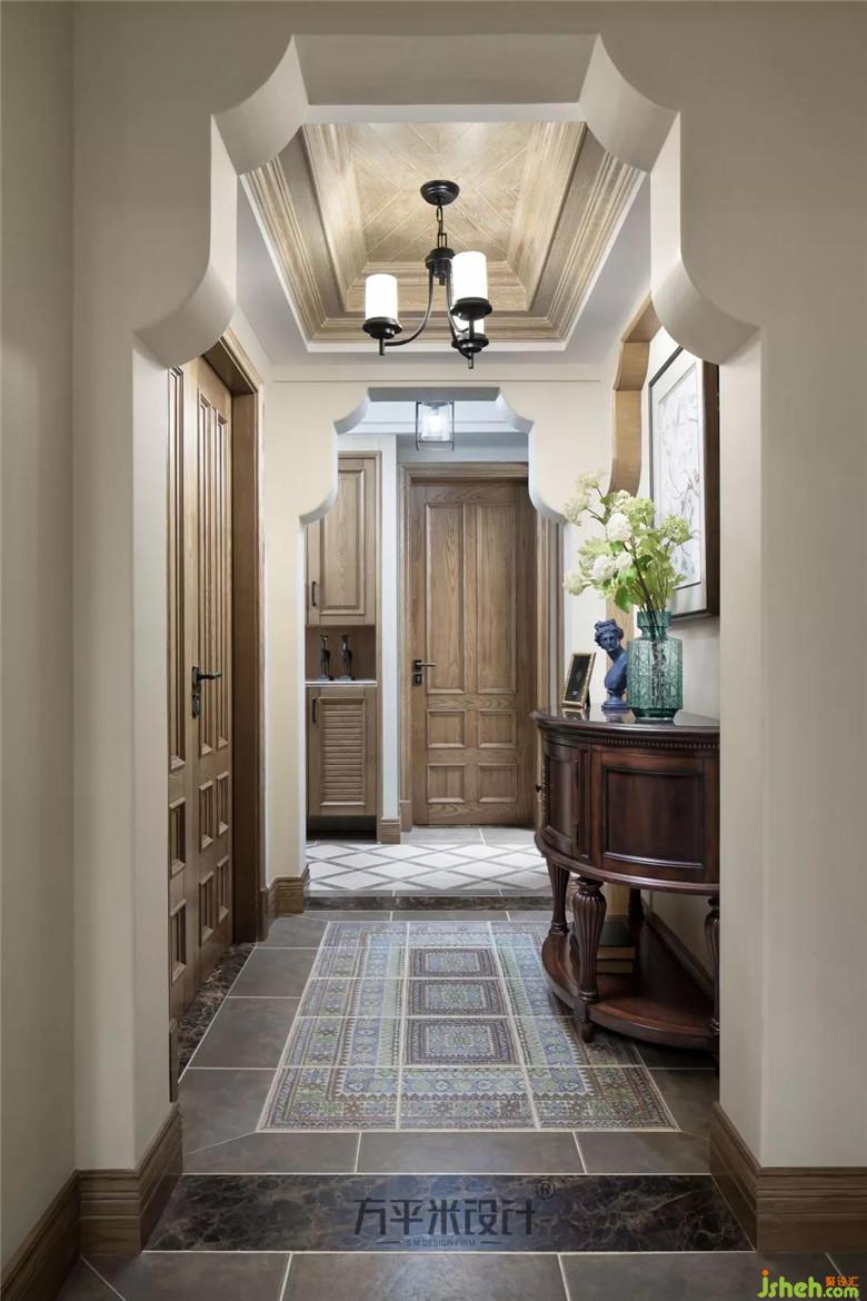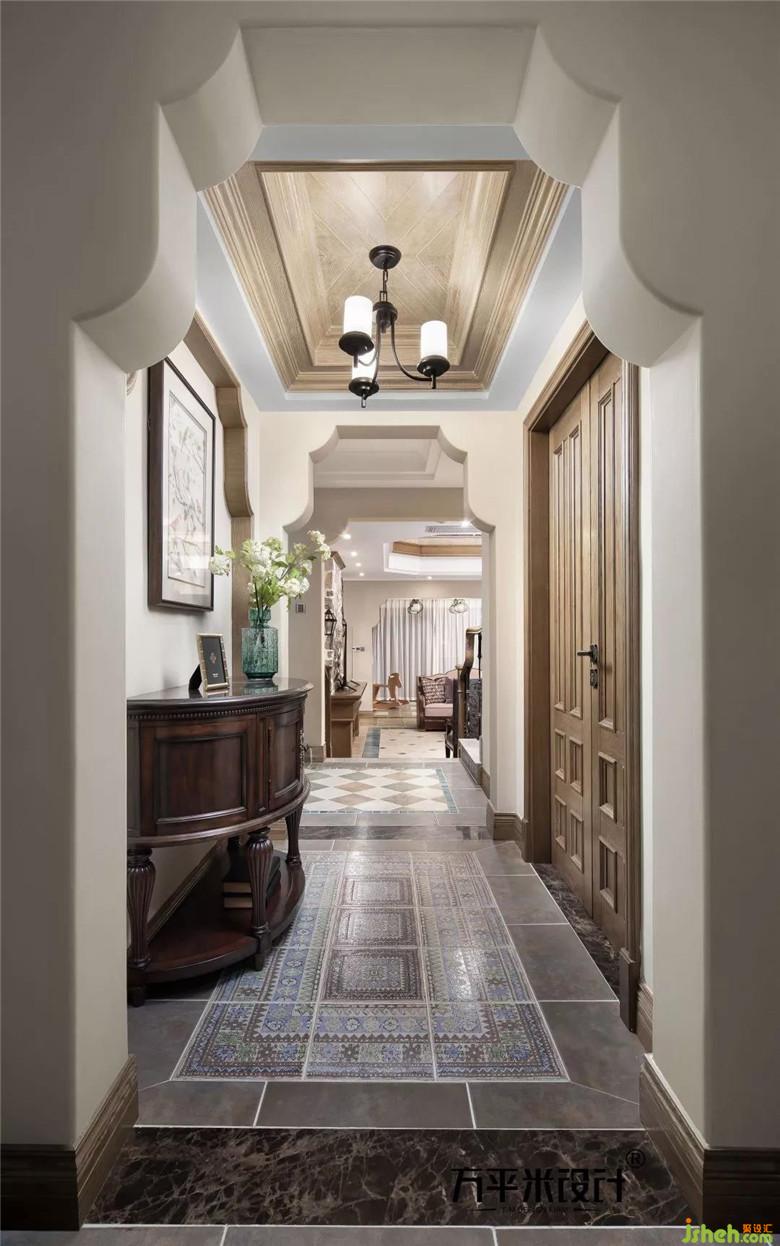 一进门,入户门厅铁艺小吊灯携着中世纪的美感,照亮整个空间。