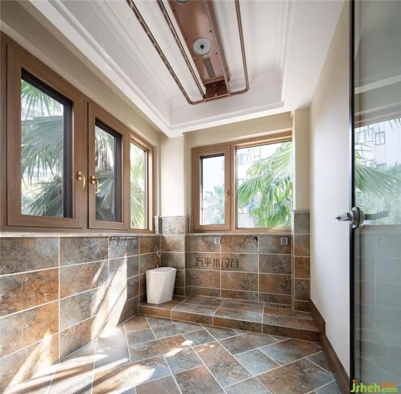 从衣帽间往外,靠近主卧卫生间,这一阳光直射的绝佳方位便是晾晒衣物的小天地。自动升降的晾衣架人性化设计,两侧敞亮的窗户,保证采光和通风。