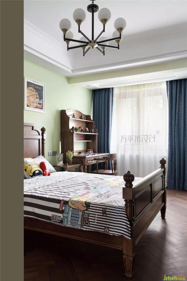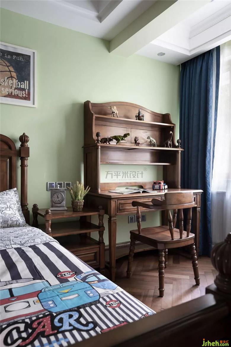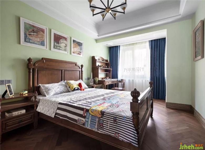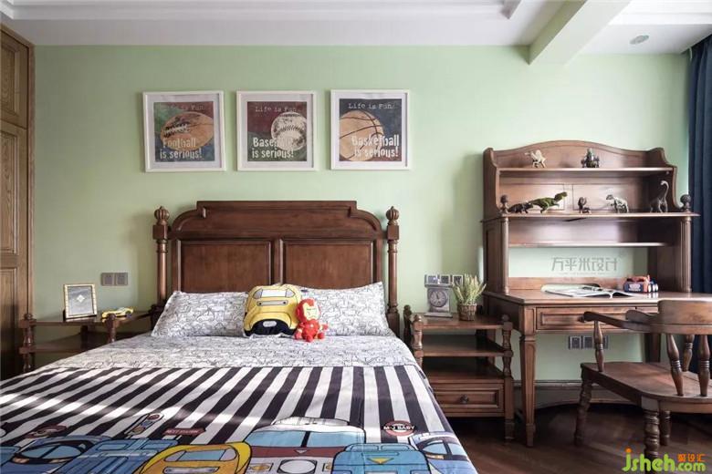 每个男孩子的童年都会有着英雄情结,幻想自己可以成为超人。屋主家两个宝贝都是男孩,哥哥弟弟所爱的除了木马摇摇椅之外,还有对漫威英雄的热衷。薄荷绿的背景墙上挂着橄榄球、网球和篮球的装饰画酷感十足,两个孩子受到父亲爱好运动的影响,也会成长为阳光向上的大男孩儿。
