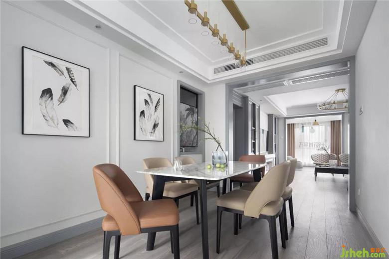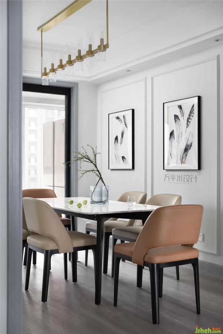 整个餐厅色彩以明亮为主,搭配极简造型。