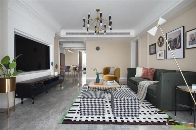 精选姜黄色单椅,千鸟格坐凳,几何地毯物件,演绎活泼不沉闷的生活调性。同时局部点缀金属装饰起到提升细节精致度的作用。