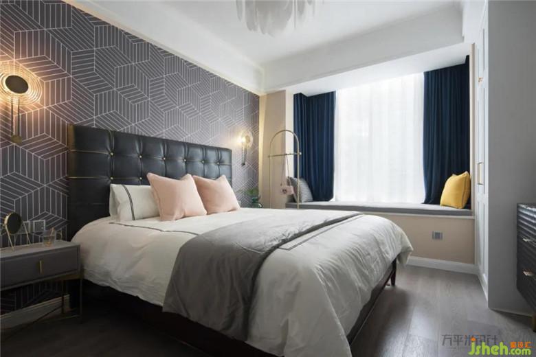 两侧柜体选用玻璃门片消弭其沉重感,中部书柜移除后,可化身客房,现有的壁灯也可变成床头灯使用,将空间效能发挥到最大值。