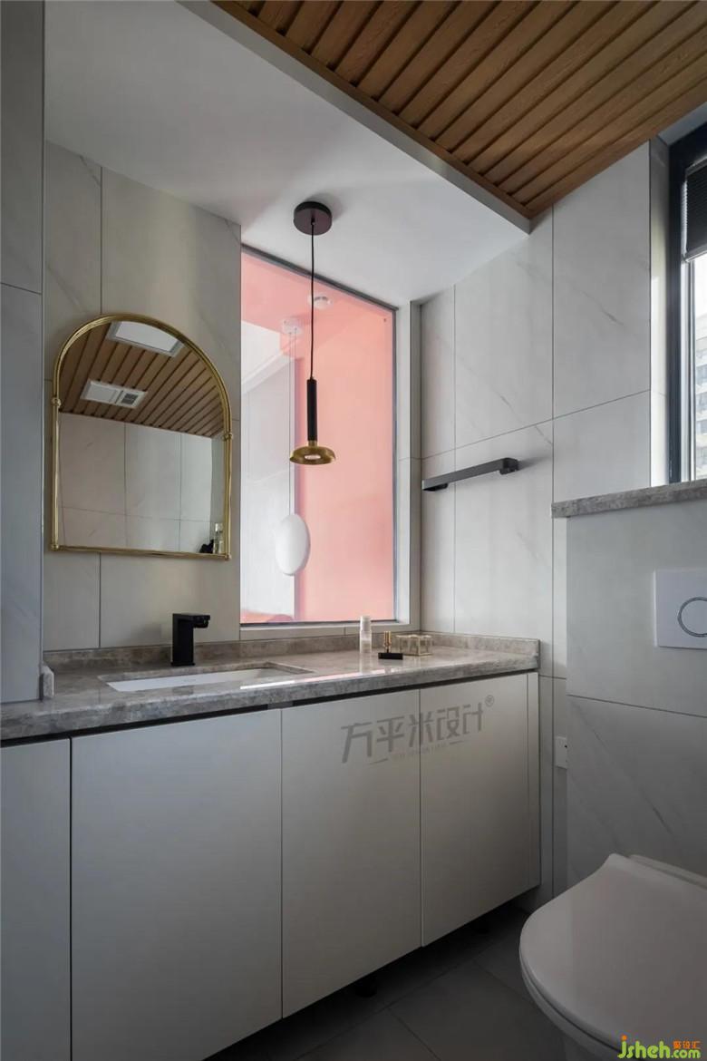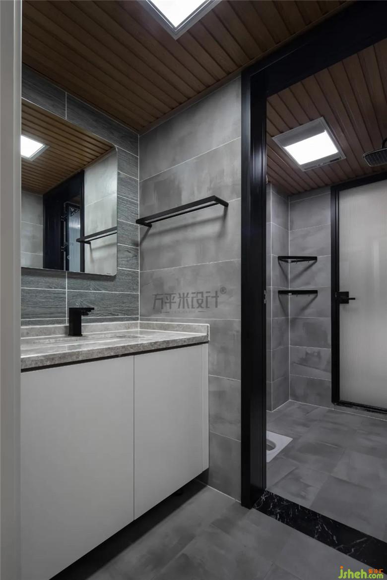 卫生间不同材质混搭刻画出肌理,明暗的变化。营造宽敞干净的视觉感,也利于日常卫生清洁。