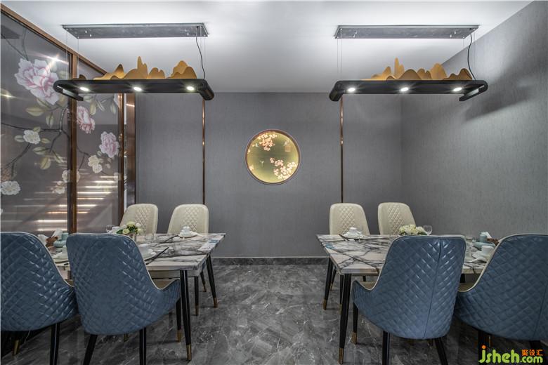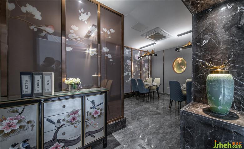 新中式风格是以尊重自然、追求真实、复兴古典中式艺术为宗旨,不是复古元素简单的堆砌而是在现代装修风格中融入古典元素。餐厅设计