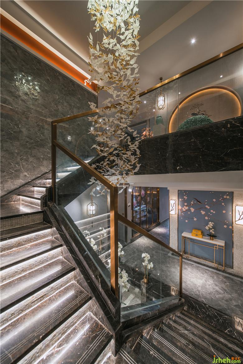 二楼充分利用原有建筑结构,采用大胆而简洁的处理手法,整体的灰色墙体与红色凹凸面形成鲜明的对比,延伸至顶面的白色吊顶,室内设计师完美整合原始空间结构,兼顾实用与美学。通过吊灯与壁灯的搭配使用,恰到好处地将虚实关系勾勒出来。