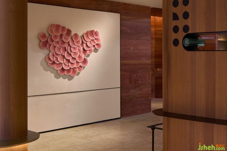 为了让住客一走进入璞宿酒店的公区大堂,就能感受到在地最重要的地理元素,我们选择了一整块红色天然石材制作成为的接待台。红色是有关于火山熔岩的隐喻,边角处自然的缺痕肌理,既可以被视为动态喷涌被凝固的瞬间,也是描写海蚀地貌特征的轮廓,它就在那里安静的存在着,在璞宿续写着让每一位客人在踏入的一刻,就与这片土地的历史与故事相连接。