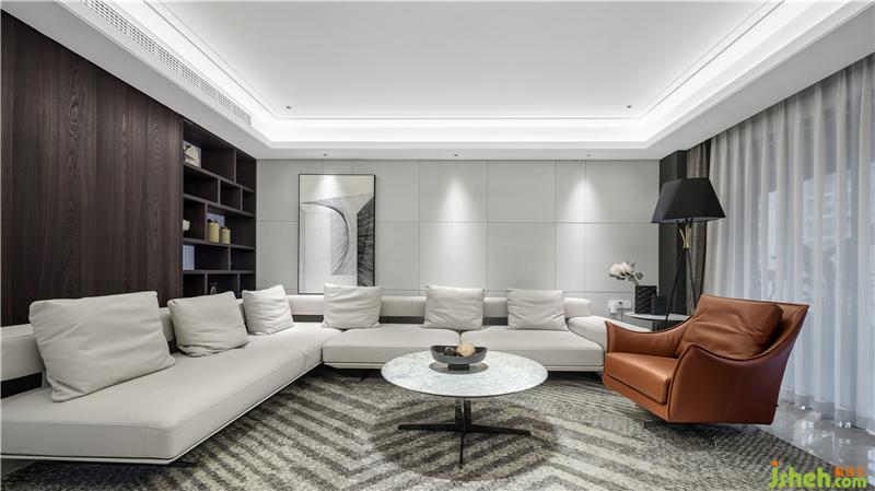 客厅空间,大理石与木材的朴质美感,家具及装置艺术品的陈列,为整体空间设计增添了不少艺术气息,不仅创造了感官的丰富度,更使得环境氛围达到沉稳又有生气的美妙平衡。