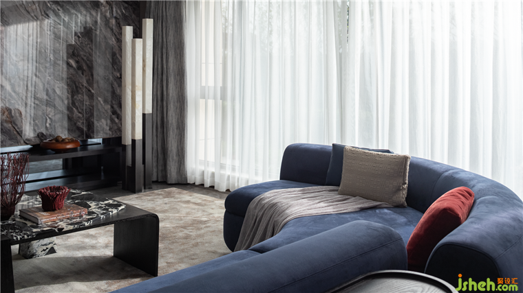 流动的沙发曲线,克制的装饰线条,是优雅与冷静的完美平衡。撞色之间,有趣的互动愈加明显,形成独特的空间节奏。