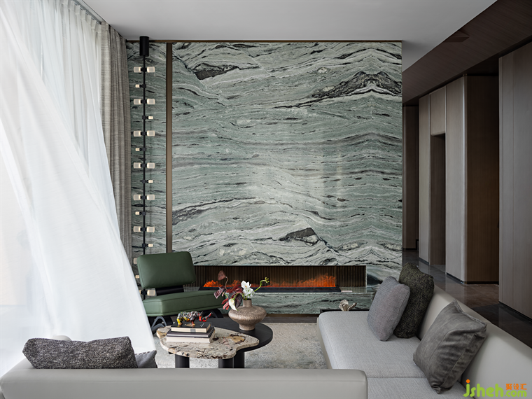 借助石材、布料、木材、皮革和金属的交织,给予空间新的生命力,于此探索内心的平静与