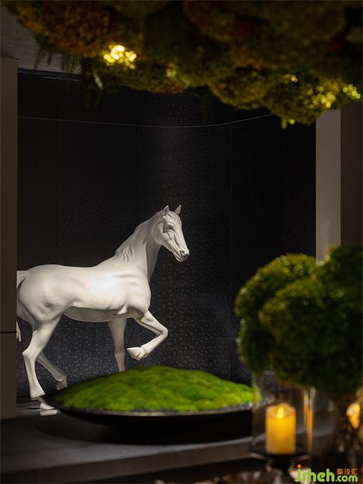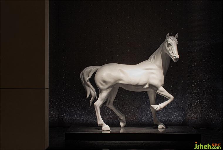 会所设计利落的骏马雕塑丰盈了接待区艺术气息,复古韵调与现代气息在空间中交织碰撞。