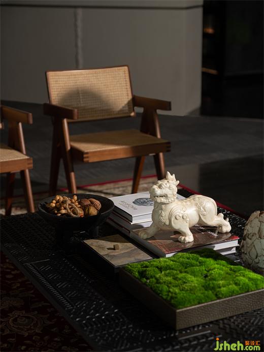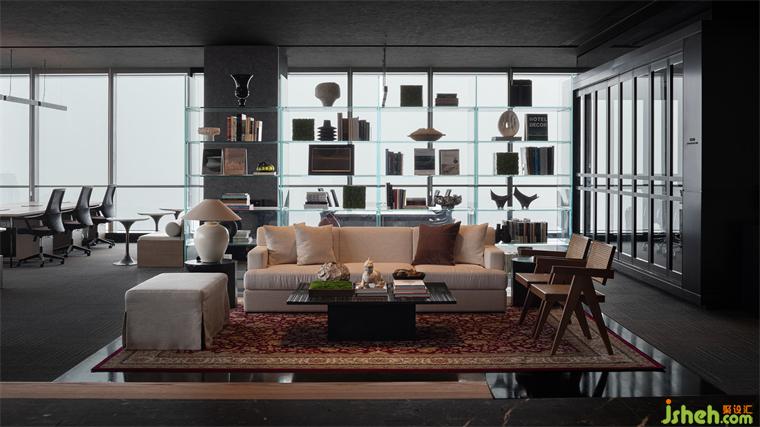 会所设计穿插摆放的艺术品,与办公空建立一场极致的人文对话,成为严谨冷静一隅的惊喜点缀。