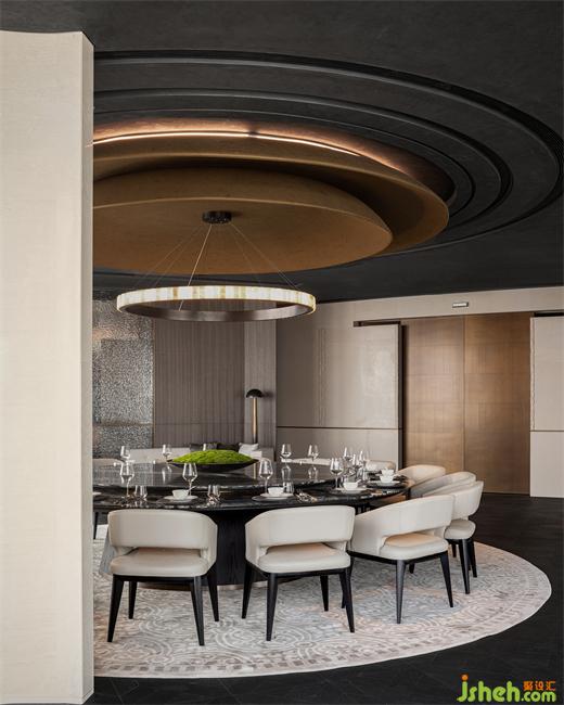 会所设计弧形曲线勾勒出三餐四季的珍重,此时此刻,相互萦绕,欢愉与共。