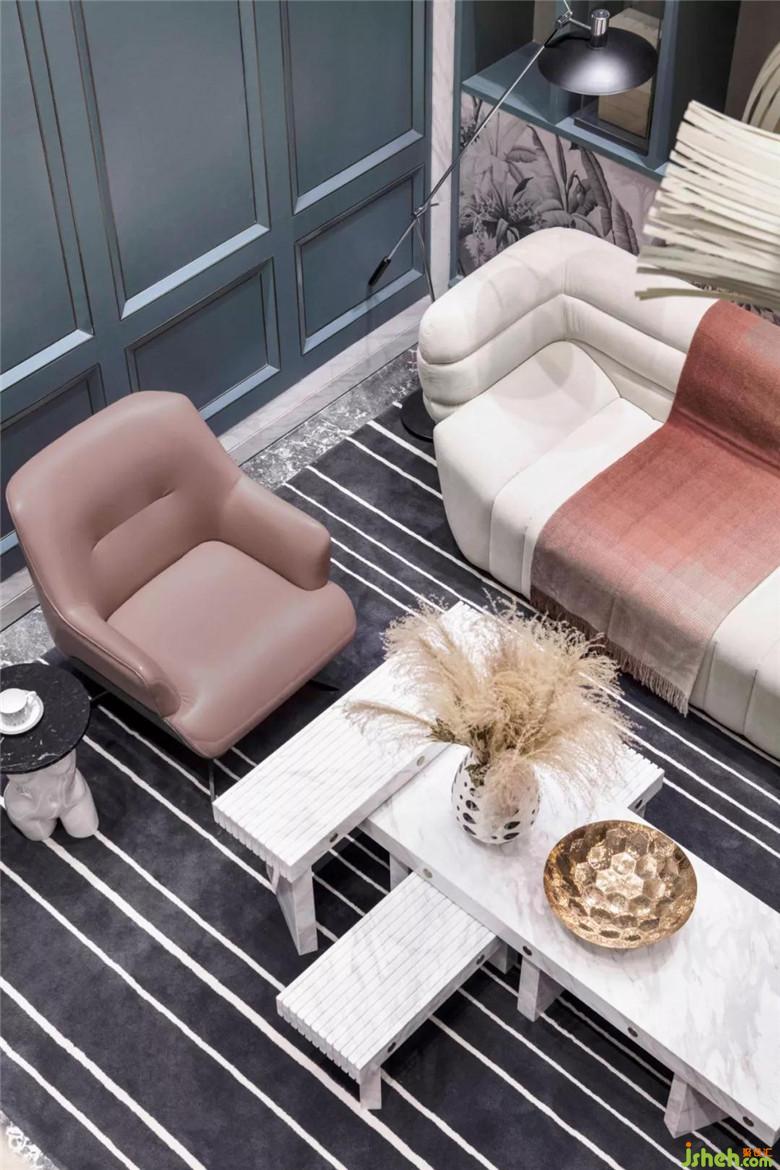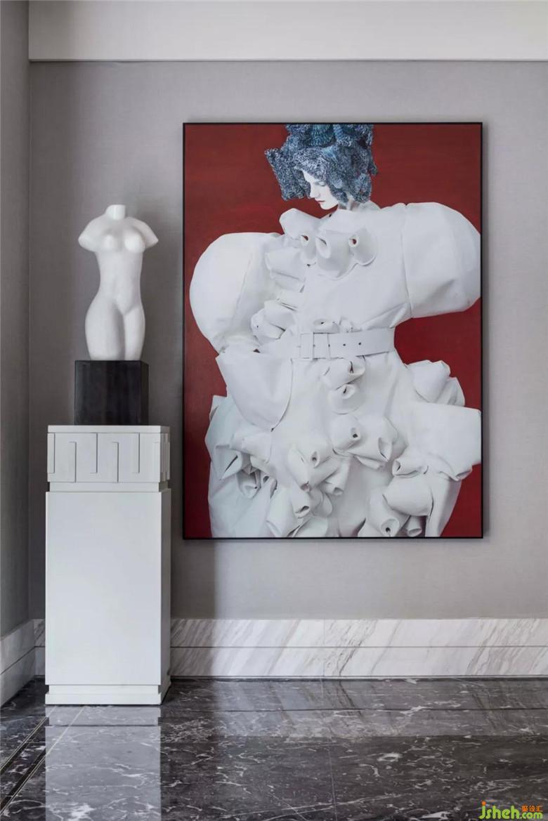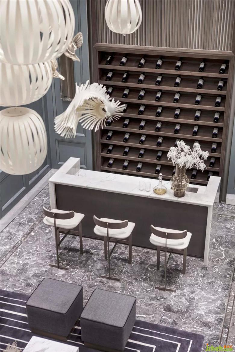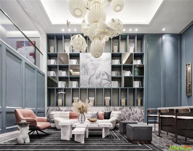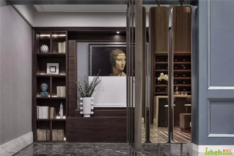 地下二层娱乐休闲室,延续着主题的致敬·经典,深色系的书架上摆放着书籍与雕塑,设计师希望不同的空间要素具有其内在特质,每个空间要素既有对比又和谐统一。对比要素之间能够形成紧密的美学联系,以获得和谐的整体空间表现效果。使得人居空间文化获得视觉与心理上的满足。