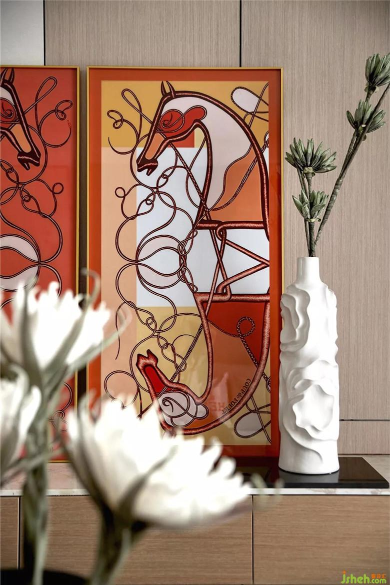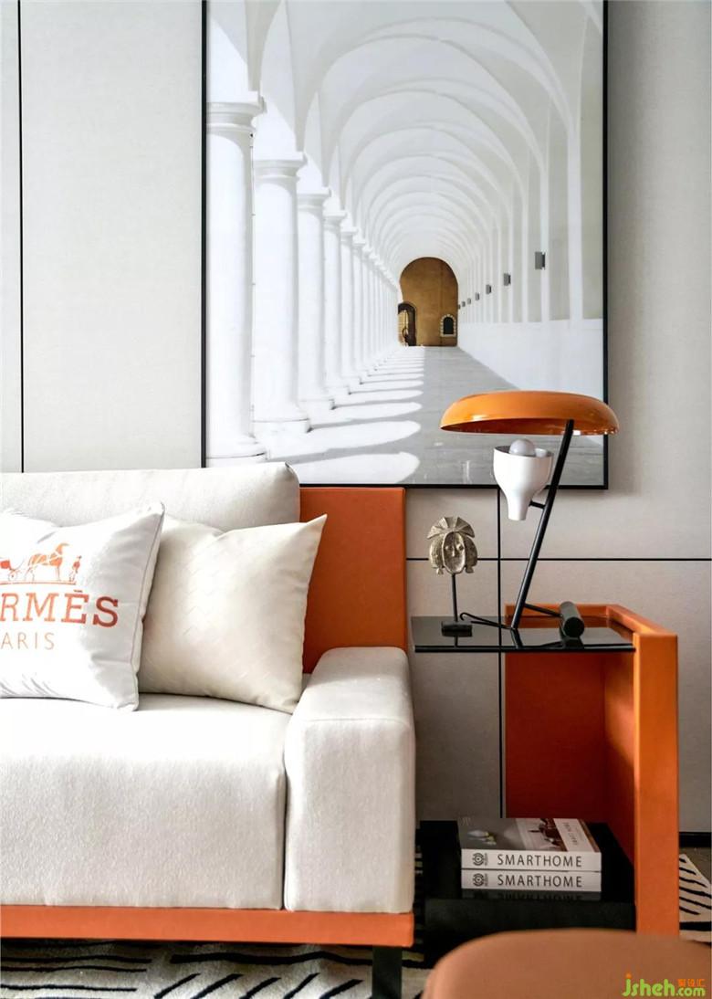 而居所保存生活的记忆,我们通过软装陈设,以橙色装点居所,辅以简约时尚的家具,艺术化的饰品小物,叙述生活的温暖与浪漫。
