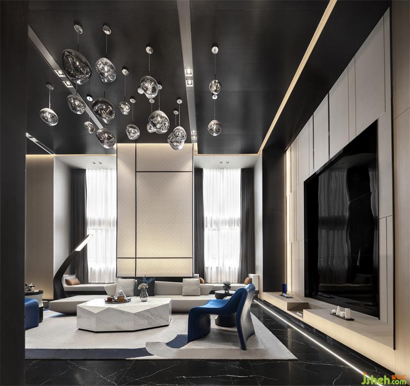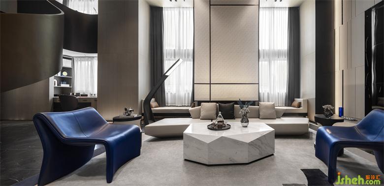 本案客群定位为高端客群,他们受过良好教育,有思想有涵养,具有一定的社会地位,热爱旅行、收藏,也对摩登、时尚的事物感兴趣。样板房设计形式追随功能,在整体简单现代的空间里,用现代的装饰手法结合精英元素来呈现都市高雅的空间氛围。在这里可以舒适地享受私宴、交谈、棋牌、健身的功能,打造一个独属于精英圈层的精神场域。