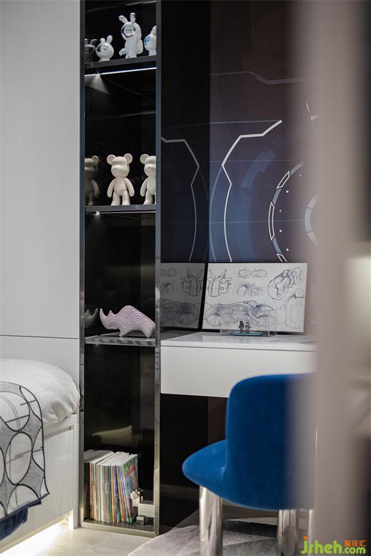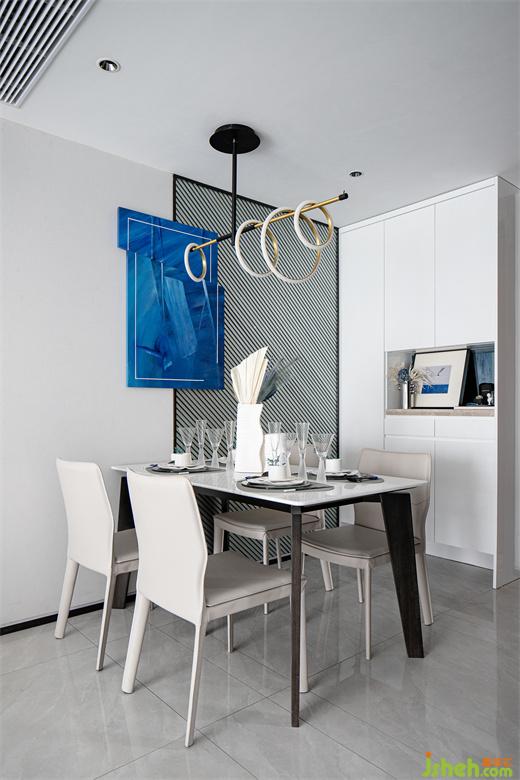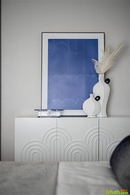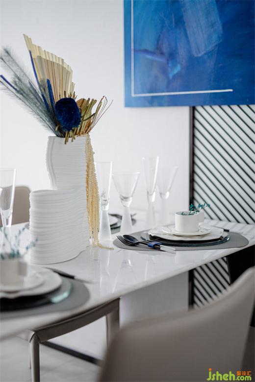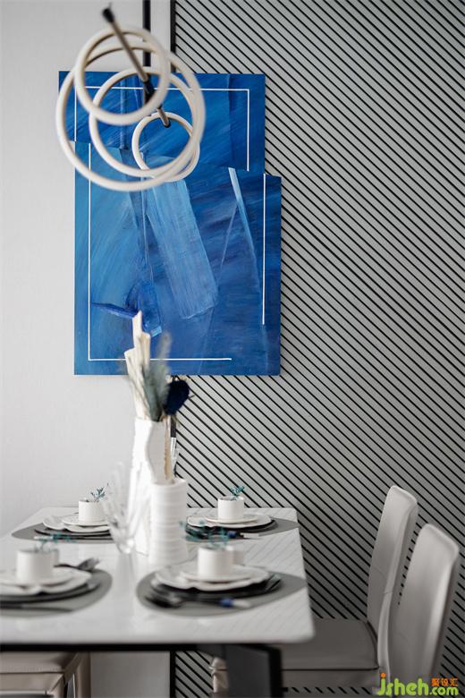此样板间设计将克莱因蓝洒落在屋内各处,静谧和特别也随之洒落其中。