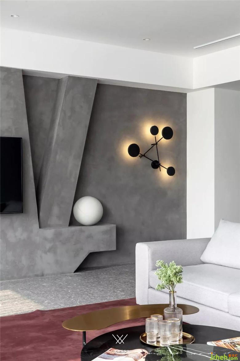 客厅采用极简风的设计,黑白灰为主色调,尽显高级。电视墙选择了艺术漆的设计,能把思绪一下子拉回到孩童时期,返璞归真。 红色的夸张造型的椅子点缀着整个客厅,使得整个客厅不会显得太过拘谨。