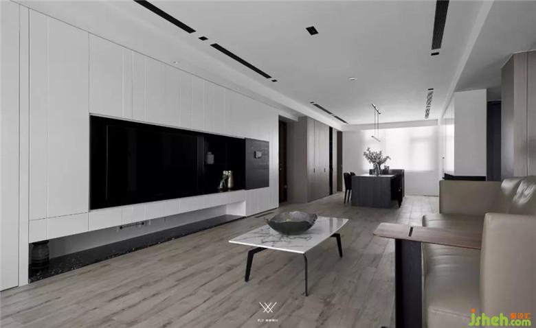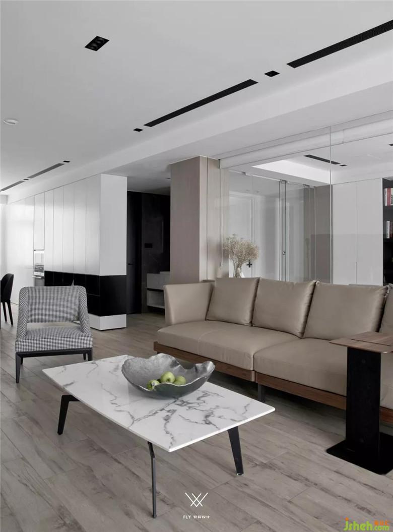 客厅整体采用的设计手法是减法,意在减去过多的装饰,展现材质最原始的面貌。